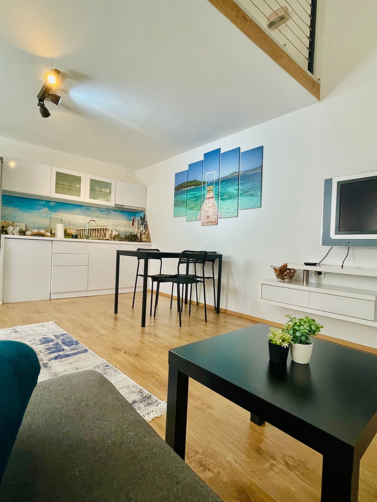 Stylish Loft Apartment with Mezzanine Bedroom Modern loft with mezzanine bedroom overlooking the living area. Located on the first floor, it offers natural light, a fully equipped kitchen, and a cozy atmosphere. Ideal for couples or solo travelers. Host: We live in the same building, one level up. Location: Only 10 minutes’ walk from Skanderbeg Square, close to the city center.