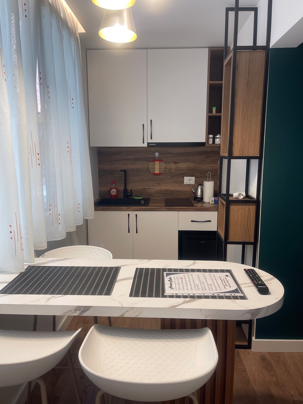 Charming and modern one-bedroom guest house, located in the heart of Tirana. 5 minutes walk to Pazari i Ri. 10 minutes walk to city center and main attractions. You will find a fully equipped kitchen and private outdoor dining area with a BBQ grill.