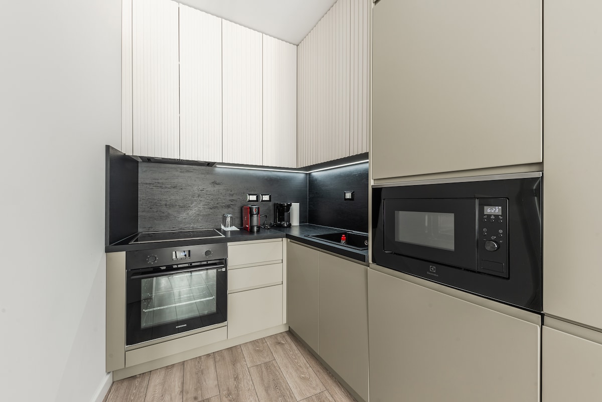 Fashionable new apartments with two double rooms, two bathrooms, completely furnished kitchenette , spacious leaving-room and big balcony. Perfect both for leisure and business, families and long-stays in a comfy and modern accommodation