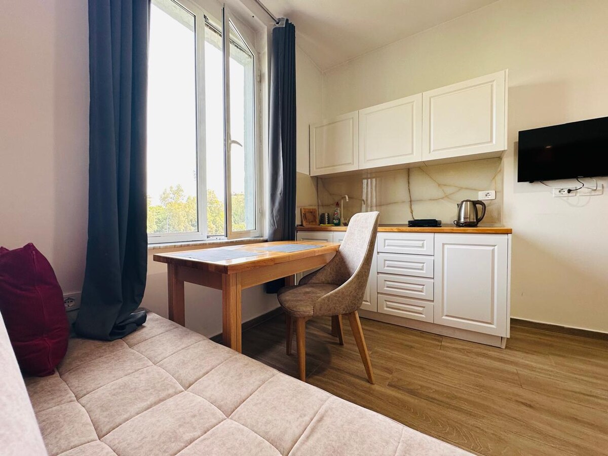 Indulge in comfort at our charming studio on Sulejman Delvina Street, facing Selman Stërmasi Stadium. Recently renovated with classic flair, it offers a cozy retreat for both short and long stays. Immerse yourself in the city's history while enjoying modern conveniences. Explore nearby shops, cafes, and the lively Blloku District, or take a leisurely stroll to the park and lake just 5 minutes away. Periodic cleaning from our staff and a practical automatic washing-drying machine are included.