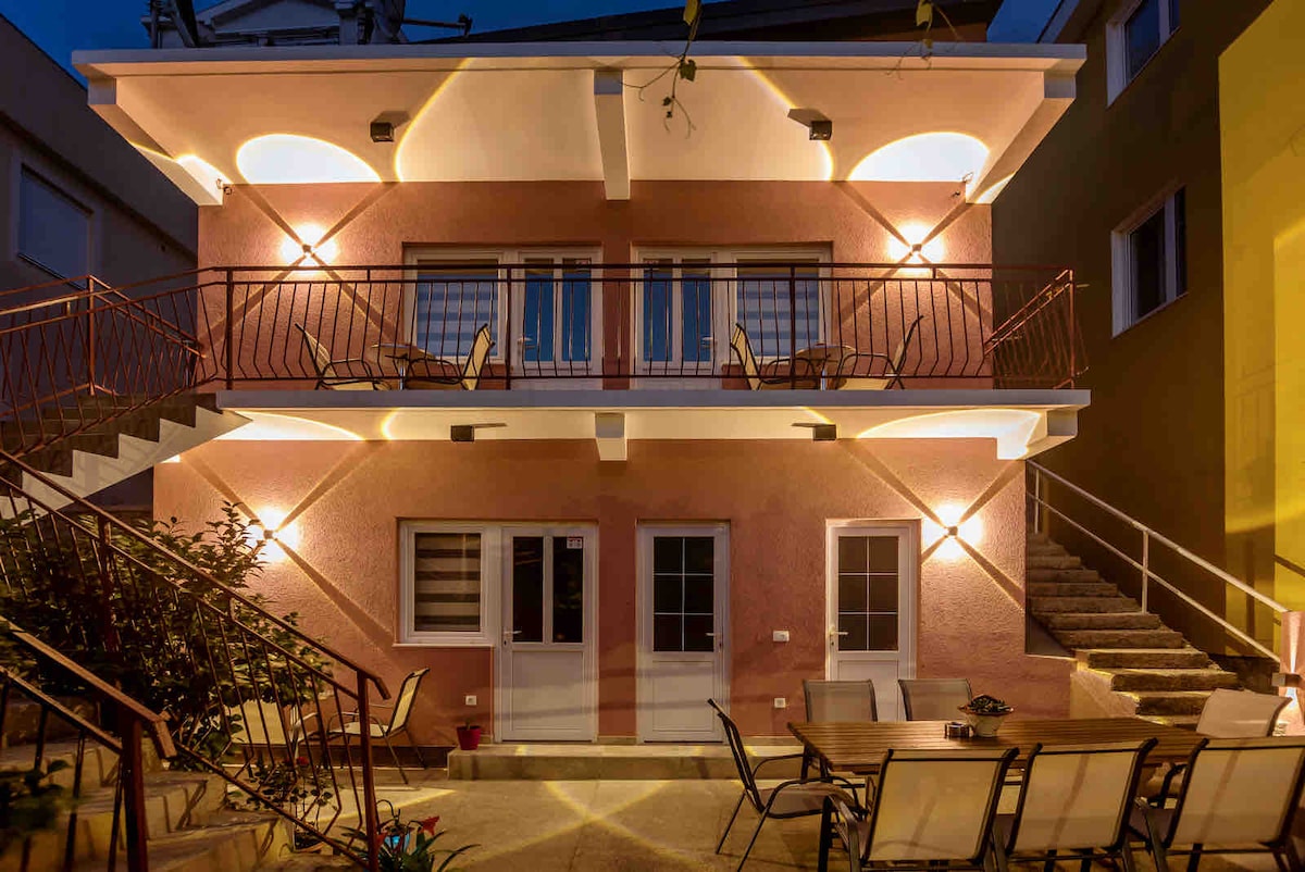 Apartments Vujičić are located along the coast in Lepetane, 3.8 km from the center of Tivat. Right across the street from the property there is a beach, the room is modernly decorated with a terrace overlooking the pores, barbecue, as well as a garden where you have private parking and free Wi-Fi. The luxury apartment features a flat-screen TV with satellite channels, an electric kettle and a small desk. Also, the apartment has a seating area, a kitchenette, and a private bathroom with a shower.