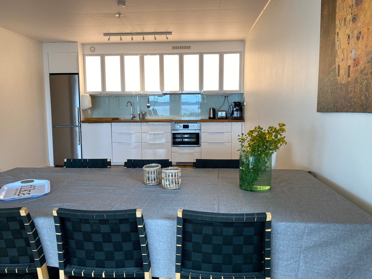 Relax with the whole family at this peaceful place to stay, a stone's throw from the sea. The apartment is located in Öviken opposite Seglarhotellet and Bastu & Logi. Magical location with sun all day. Patio in all directions and swimming for the whole family a stone's throw away. Newly renovated in 2023. Two bedrooms with 7 beds in total. Bathroom with washer and dryer. Monitored parking included at the ferry pier. The ferry departs from Tuvesvik and takes 40 minutes.