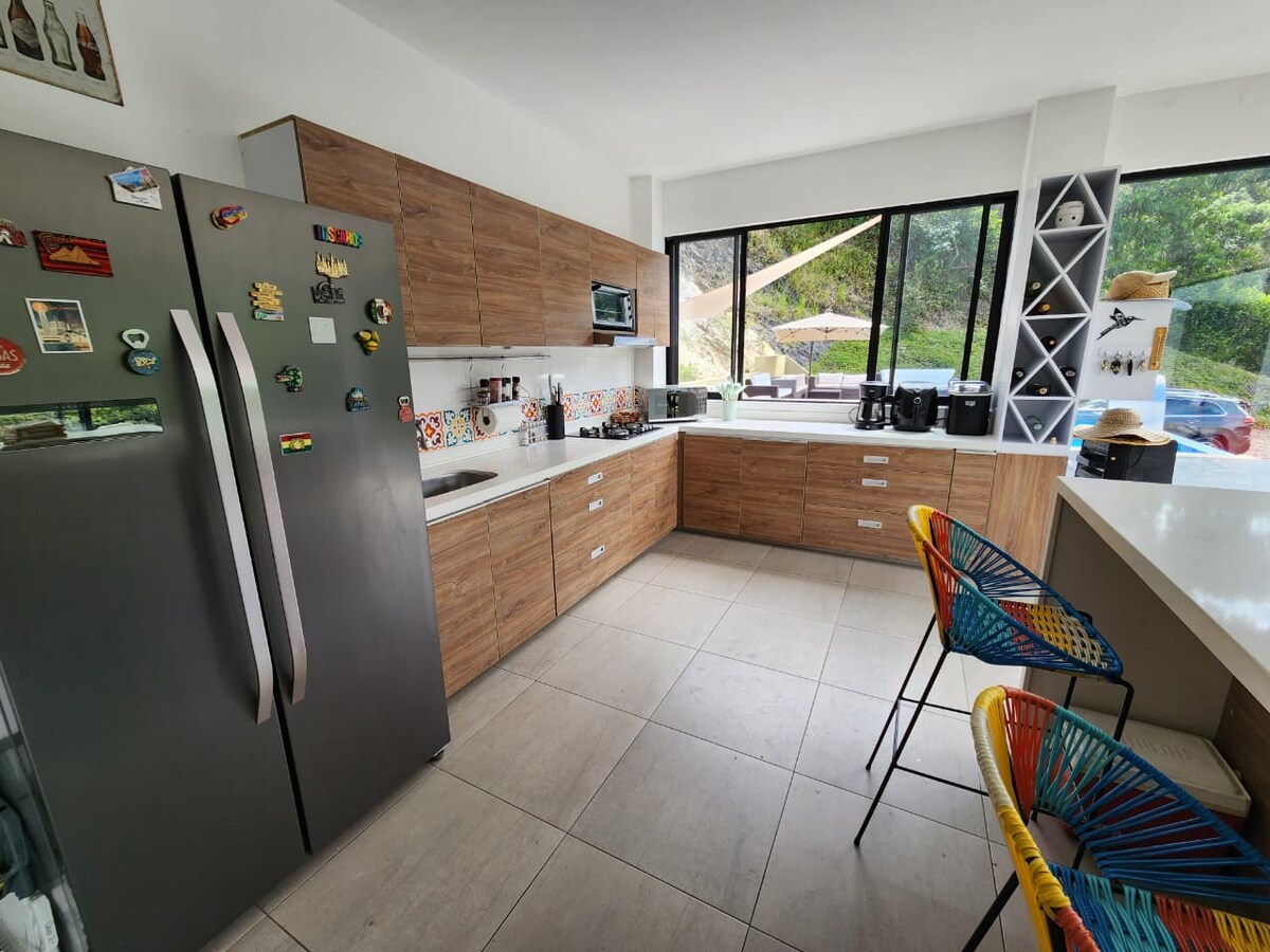 Spectacular country house less than 2 hours from Bogotá. Perfect for resting, BBQing, and lounging in the heated pool. Great Weather: Warm during the day and cool at night. STUNNING VIEWS OF THE MOUNTAINS AND GUADUAL. The house has 3 very comfortable rooms with a bathroom and terrace. Plus a large terrace by the pool and barbecue with incredible mountain views. And a fully-equipped kitchen. Located 12 minutes from the village of La Vega and 30 minutes from Tobia, a great place for sports tourism.