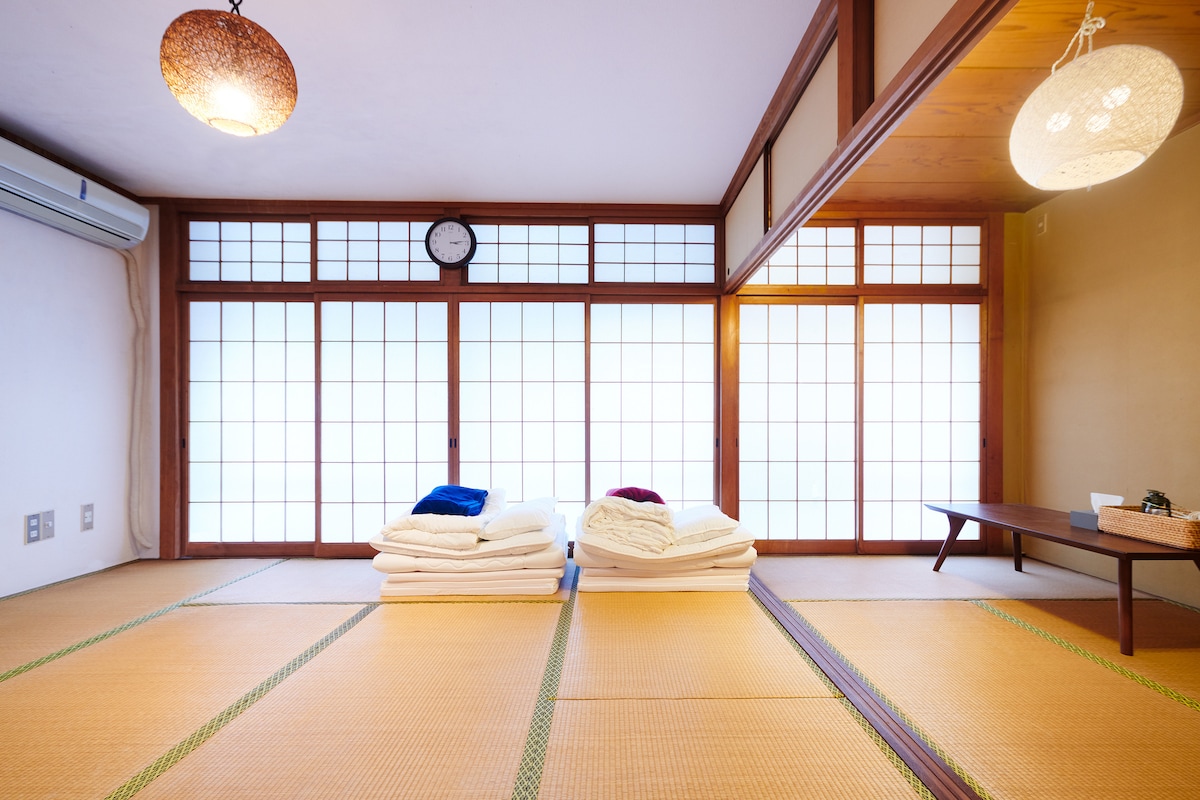 Spacious 12-Tatami Japanese-Style Room for up to 6 Guests Perfect for families and groups! ☆Many cafés and restaurants within walking distance ☆ Sento & hot springs about 15 min by car ☆ Parking lot 1 min on foot (¥300/day) ☆ 15-min walk to Tokushima city center Our Japanese-style room “Aratae” is on the 3rd floor, offers a spacious tatami layout, ideal for families with children and groups traveling together. With showers and washrooms just nearby, your stay will be smooth and stress-free.