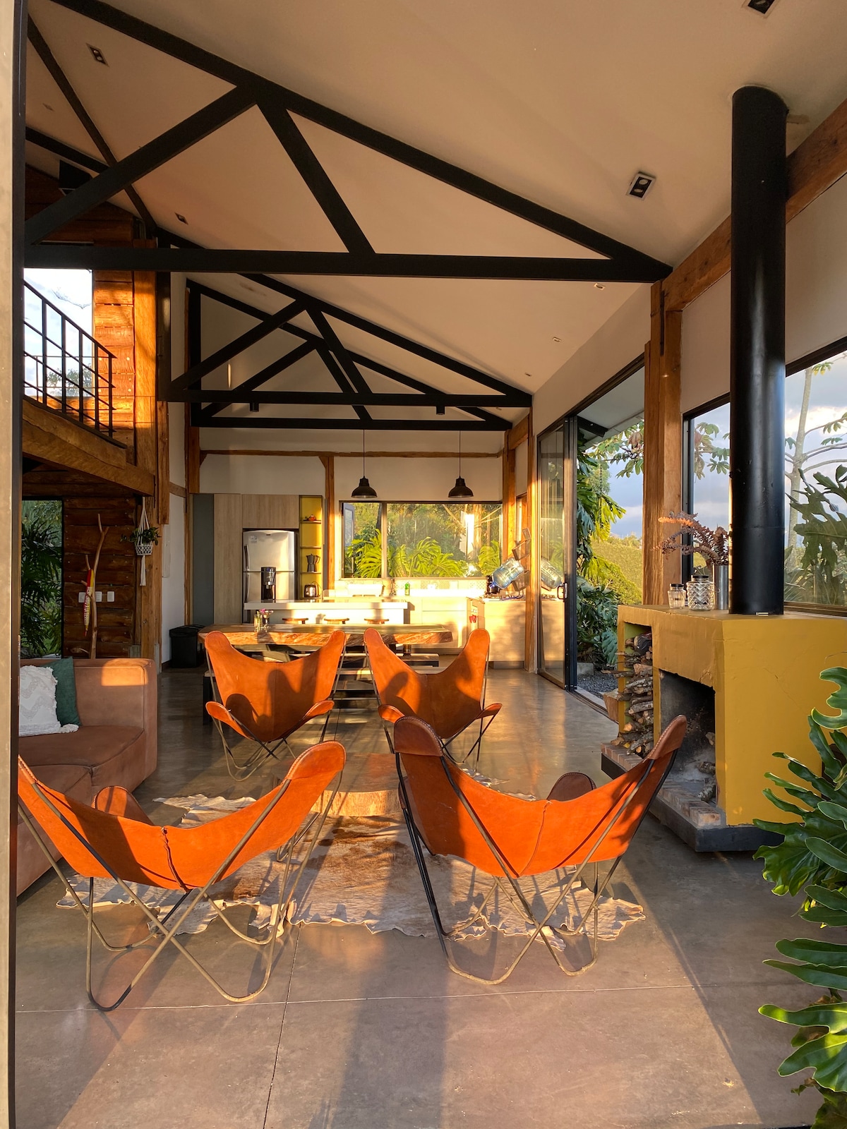Escape to a country house surrounded by nature and tranquillity, just 5 minutes from Filandia’s main park. Enjoy evenings around the campfire, coffee-growing landscapes, and spacious areas to share with family or friends. A designer retreat in the middle of the Colombian coffee landscape. Enjoy an experience of tranquillity and nature in its purest form. Enjoy a panoramic view over the Quindío forest and valleys. Unforgettable sunrises, starry skies and magical sunsets