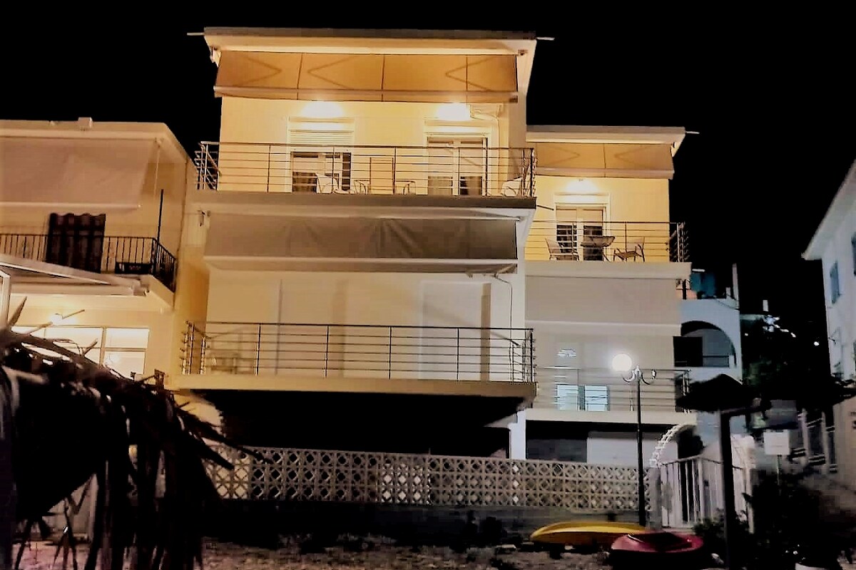 Beachfront Villa Panos with panoramic sea views