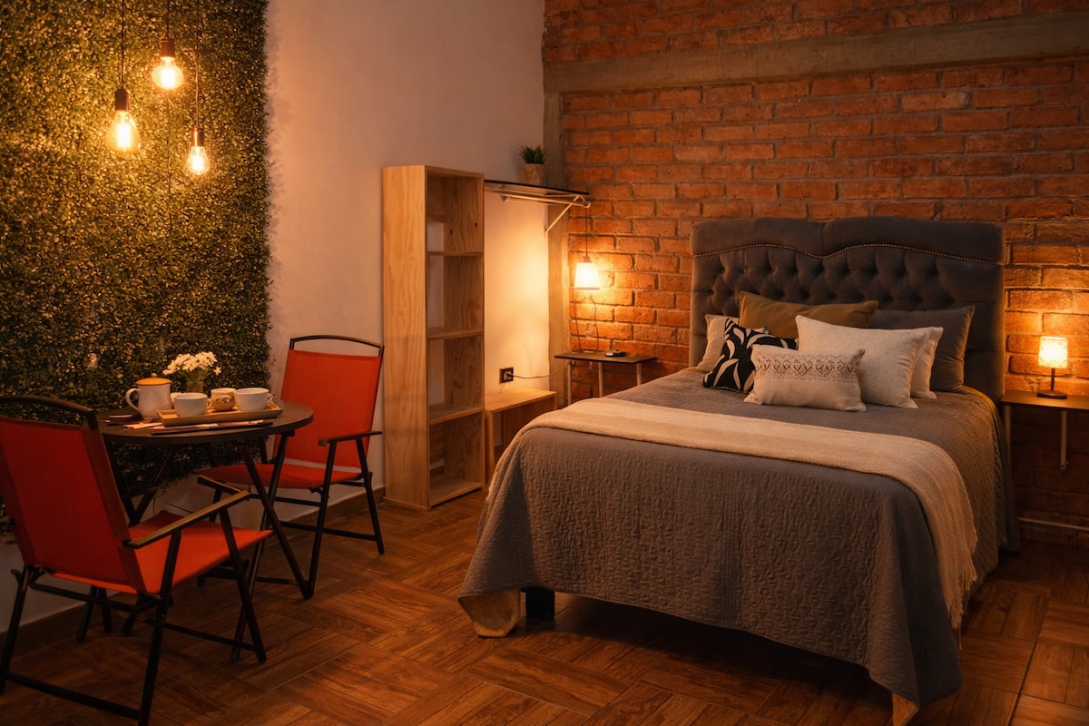 Suite amplia con facil acceso por avenidas principales, ideal para viajes de negocios o de placer, equipada con microondas, frigobar y parrilla electrica; Cuenta con estacionamiento propio.