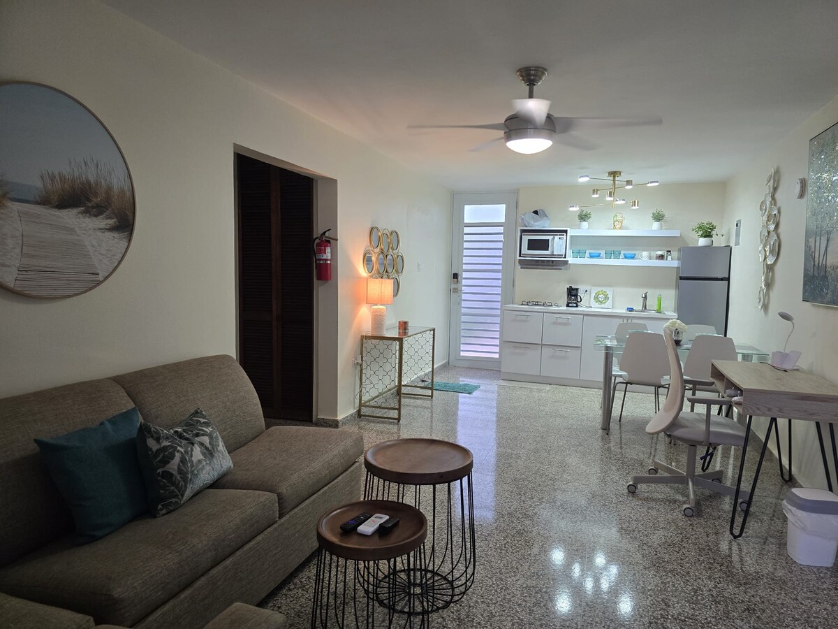 Beautiful and modern space, perfect for a couple or a group of four people. Strategically located five minutes from the airport and 10 minutes from San Juan. Come to Puerto Rico and enjoy the beaches, its people and much more. The apartment consists of a living room with a sofa bed queen size, a beautiful room with a queen size bed, two air conditioning units, two tvs and a beautiful, modern kitchen with all utensils for cook, private parking and balcony for share with your family.
