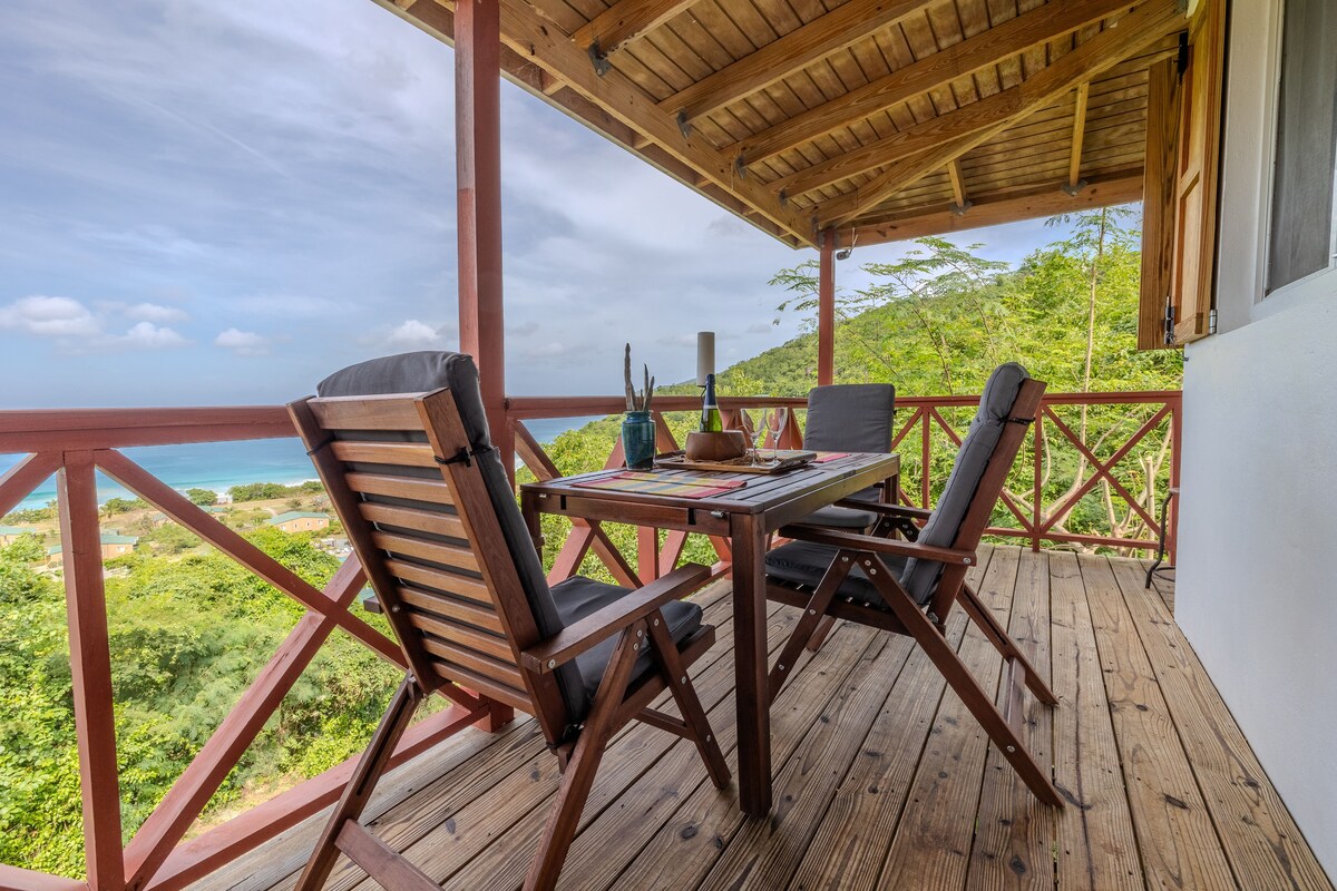 Studio Cottage with kitchenette and outdoor deck, perfect for two. Five minutes drive away from Cane Garden Bay and ten minutes from town, Botanica is a garden oasis spanning over an acre, with four standalone houses. By day, you will be amazed by the views of the hills, the bay and neighbouring islands while you soak in the sun on the deck overlooking the lush garden. At night, you will be lulled to sleep by the sounds of nature - crickets, frogs and the whispering of the coconut fronds.
