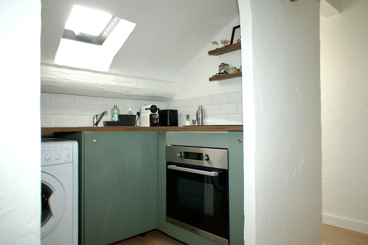 Put your bags down in this pleasant and ultra-bright little cocoon. Sweet and comfortable room, cosy living room perfect for resting, convivial dining area and kitchen equipped for your homemade brunches. Modern decor, plant touches and a warm atmosphere for a stay, as a couple or with friends. Here, you feel good as soon as you walk through the door!