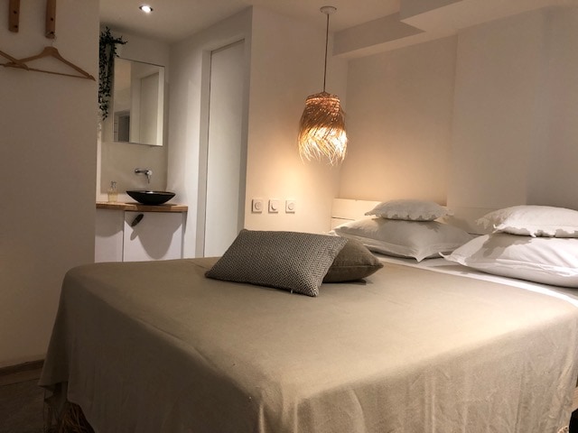 This apartment is an old barn located 20 meters from the old port of La Ciotat and 5 minutes from the first beach. With 6m50 of ceiling, this is a spacious loft. Its large window overlooks a garden: you are quiet and with good double glazing. You benefit from air conditioning and an Indigo centre parking space 7 minutes' walk away (standard Indigo space, 1.90 m). The question I get asked the most is: does it have sheets? Of course, sheets & towels are included.