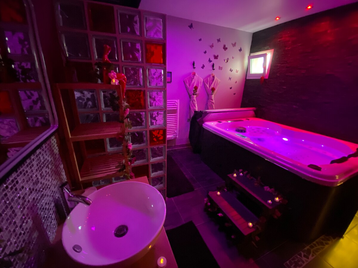 Out of sight, at the end of a cul-de-sac, this place welcomes you to spend a few hours, a night or a weekend with your partner in a space with a unique and sensual decor. Bruno and Émilie will personalize your stay so that you can fully enjoy this break. Your arrival can be completely autonomous if you wish, with flexible arrival and departure times, in the middle of the day, in the evening or in the morning.