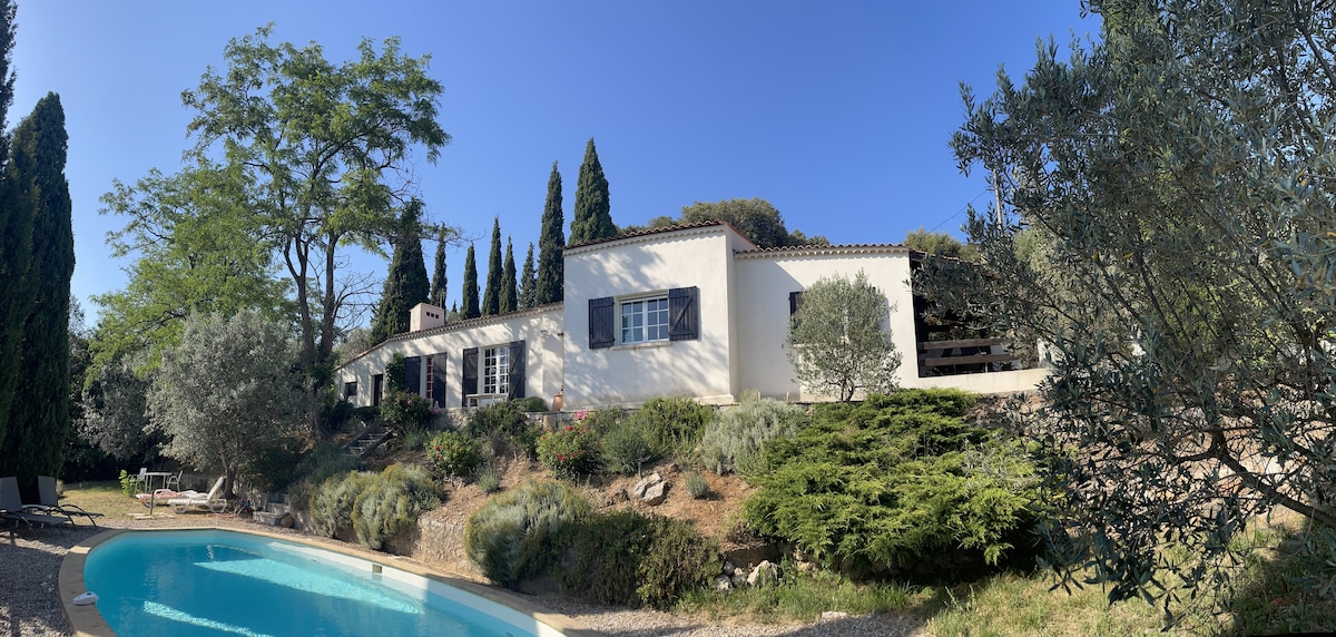 "Lou Cade", stone bastidon at the end of a charming country road in the heart of Provence Verte, among the cades, olive trees and pines on more than 8000 m2 of land ideally exposed for stays in total relaxation. The magnificent view of the Massif des Maures from the Provençal basin will enchant you every day, just minutes from one of the prettiest villages in the Var, which offers, in addition to restaurants and shops, its market and its winter and summer entertainment...