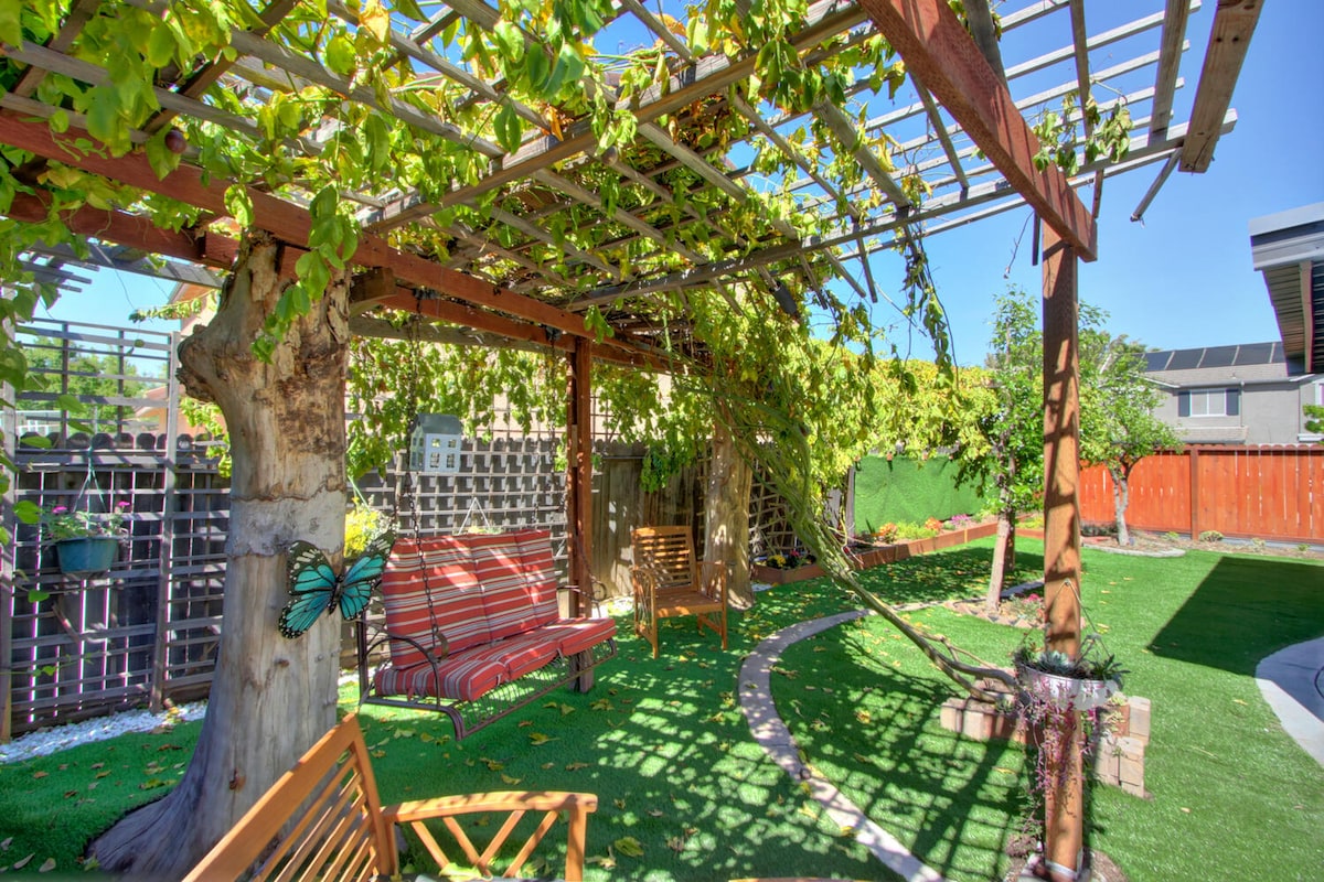 Forget your worries in this spacious and serene space. Enjoy a relaxing shady backyard with a pleasant breeze perfect for unwinding, enjoying a meal, wine, and reading. This house is located in a quiet neighborhood and full of amenities - spacious bathtub, large dining platform, inviting living room with a comfy couch, and very peaceful connecting environment. Coffee shops (Starbucks/ Peets), sandwiches, restaurants, Raley's Supermarket, and Gas stations are just a mile away.