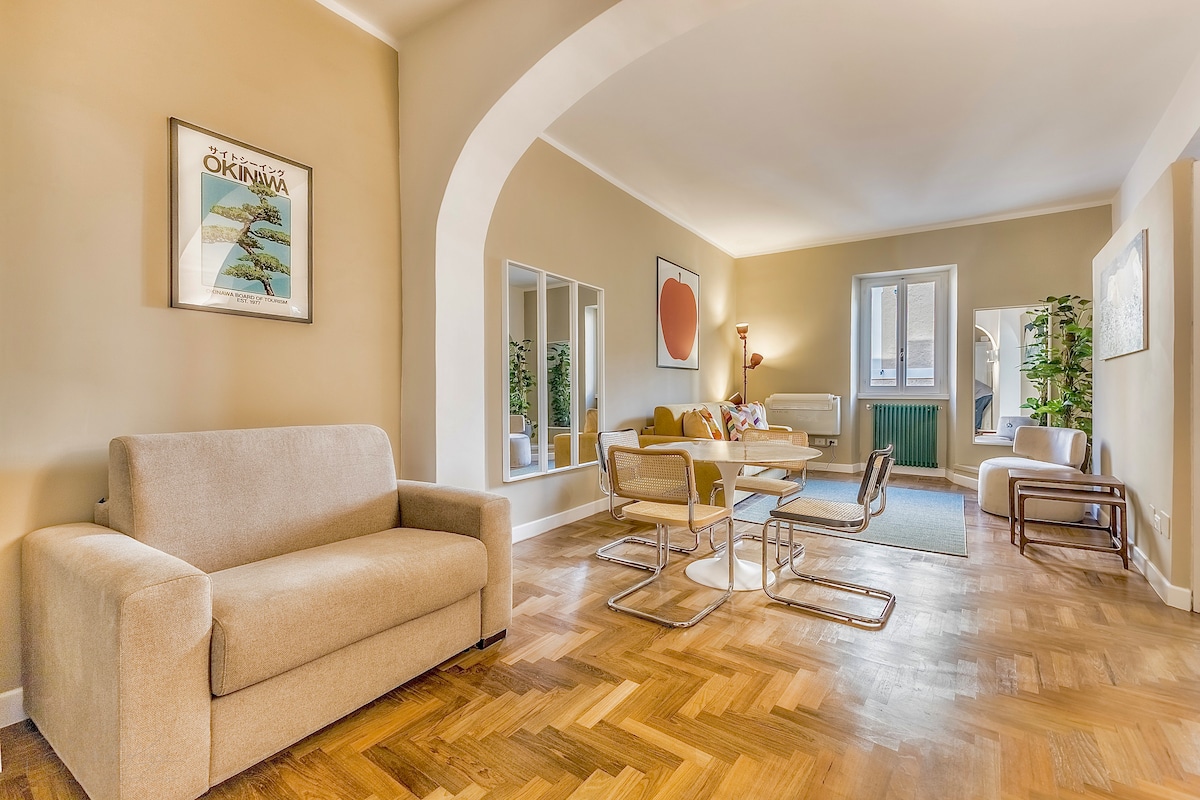 A newly renovated house, in that Trastevere where all the Romans would like to live. Between the church of “Santa Cecilia” and that of “San Francesco a Ripa”. Immersed in history, in a mood of peace and poetry. Let yourself be overwhelmed by the heart of Rome in an apartment where light and the sky reign supreme, where you can enjoy a breathtaking view of the Aventino Hill and with a 2-minute walk, among unforgettable characteristic alleys, you can reach all the attractions.