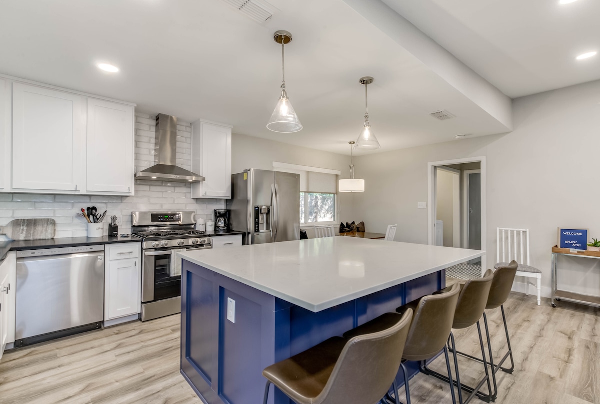Discover our vibrant, newly renovated North Austin Getaway! Nestled in the safest, most family-friendly neighborhood in the city! Each room celebrates Austin's unique charm with playful décor. Our prime location is ideal for easy access to attractions but without the hustle and bustle of the busy city, this haven is ideal for families/groups seeking a lively, memorable stay. ✿Airport:27mi ✿Moody Center:20mi ✿Rainey St:21mi ✿Barton Springs:21mi ✿Zilker Park:21mi ✿Circuit Americas:38 mi ✿UT:20mi