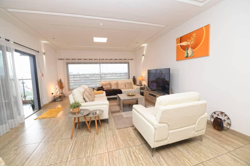 Beautiful apartment combining charm, modernity and ideally located in the heart of Cocody. Bathed in light thanks to its large openings, it offers a functional and pleasant living space. This apartment will seduce you with its optimized layout and warm atmosphere. Two bedrooms, two showers, a guest toilet, a fully equipped kitchen, furnished balcony.