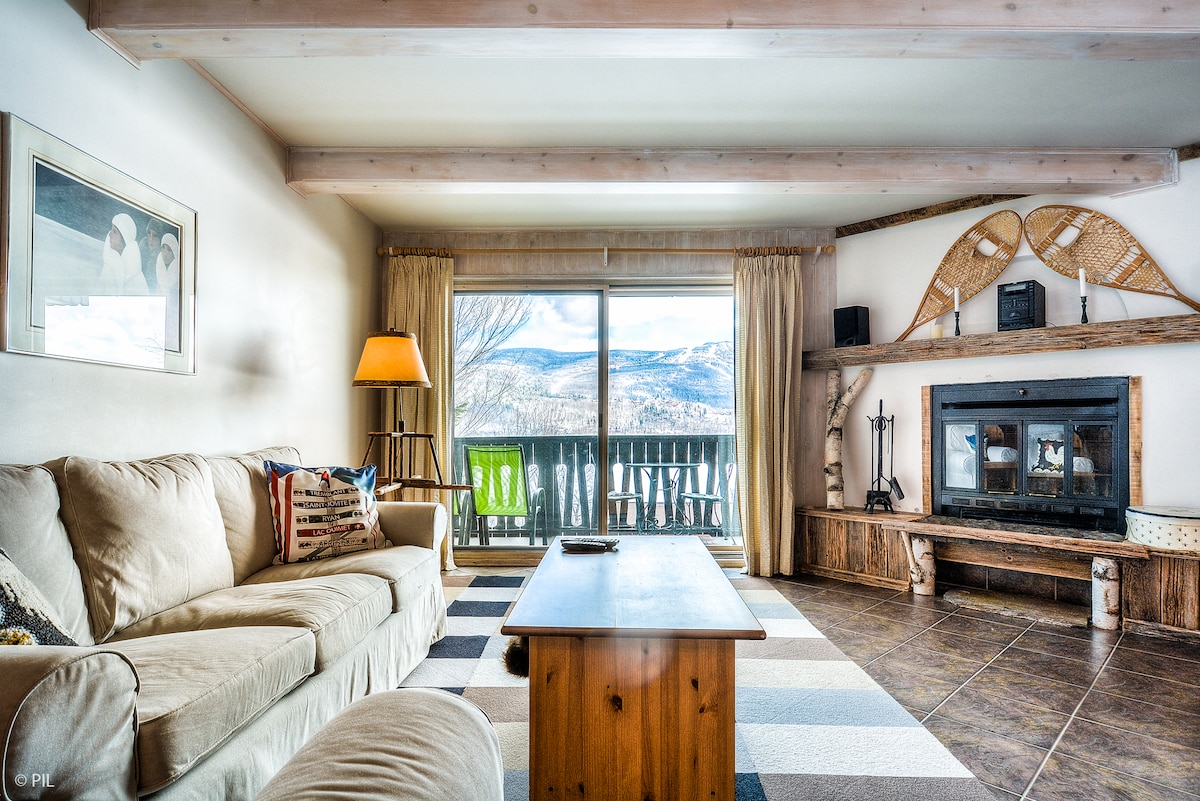 Take it easy at this unique and tranquil getaway. Located directly on the slope. BEST SKI-IN/SKI-OUT IN TREMBLANT. This one bedroom condo with Air conditioning (Queen size bed) and a Wood fireplace can easily fit 4 persons and is well equipped to welcome any outdoors lovers. For the SKI-IN/SKI OUT note that there is about 50 steps from the condo down to the Chalumeau trail to start or come back from your ski day. CITQ #295941