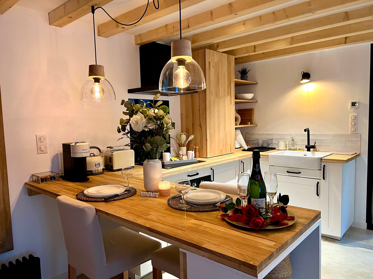 Unique in Quimperlé: private jacuzzi in a 7m cathedral space. An intimate sanctuary for two. From the moment you enter, the spectacular space and jacuzzi create an enchanting atmosphere with soft light, steam and beams. Set in a stone house, this retreat blends elegance and authenticity. Freestanding tub, equipped kitchen, absolute calm. Enjoy a unique experience. 2 min from town, 12 min from beaches. Rare and elegant. Soft light, silence… unforgettable moments. Your escape for two.