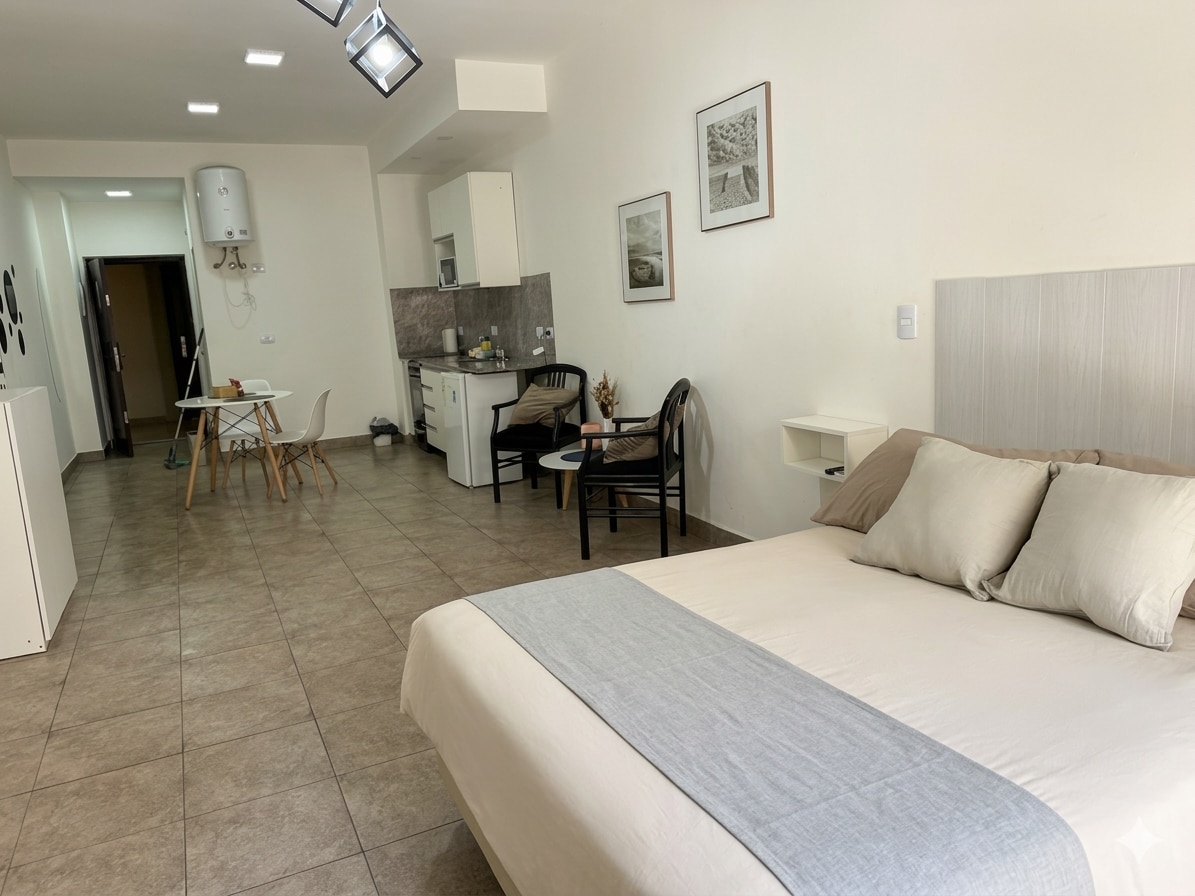 🏡 Enjoy a modern, practical and fully equipped apartment in the heart of Hurlingham. Ideal for couples, business travelers or small families with 1 child looking for comfort, good connection and tranquility. The space has: • Comfortable premium double bed • Sofa bed • Air conditioning hot/cold heat • Flat screen TV • Wi-Fi. • Kitchen equipped with electric stove, refrigerator, microwave, electric oven, electric kettle and utensils • Dining table • Bathroom with shower