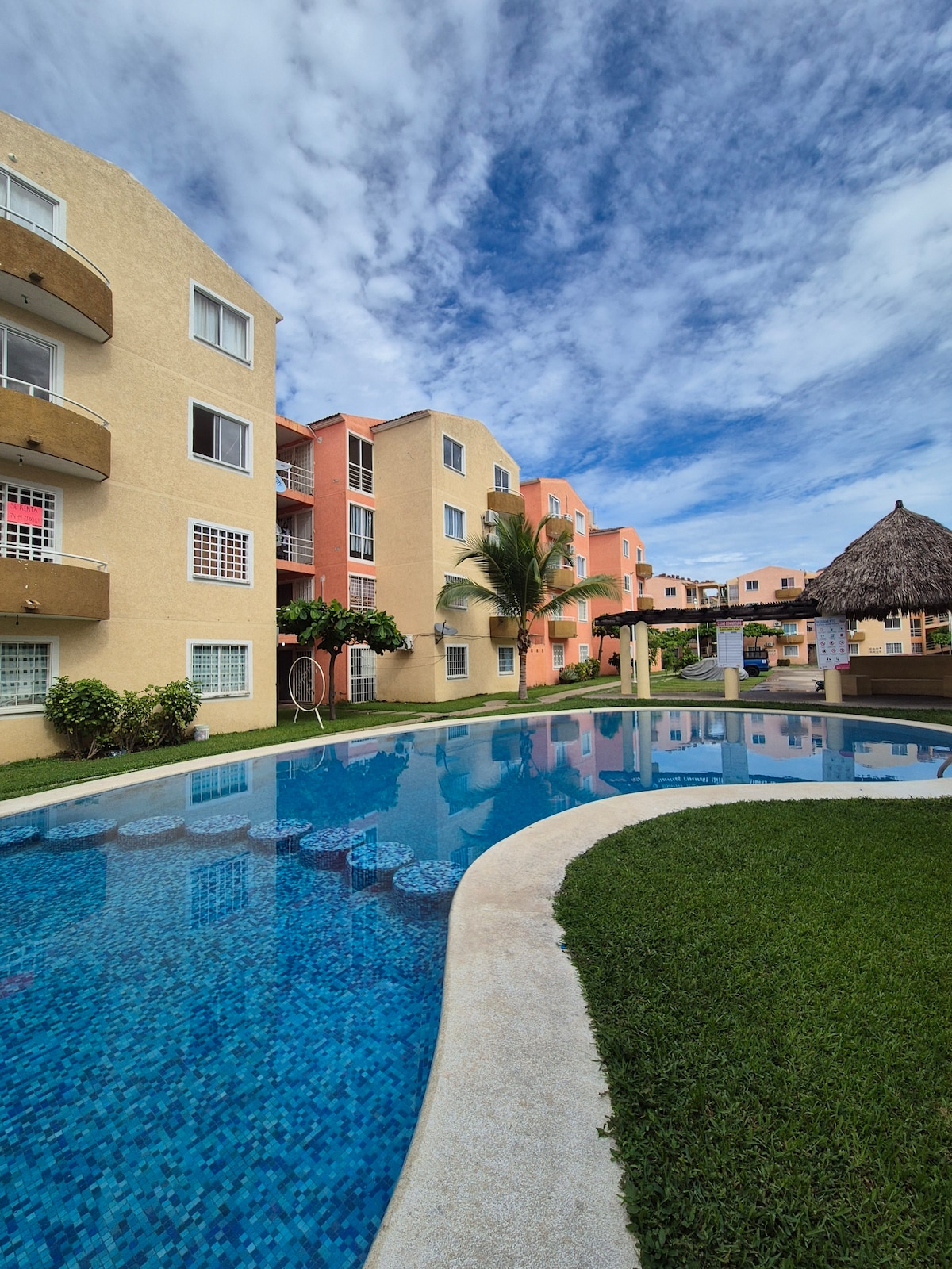 Bello departamento, con diseño moderno en condominio familiar con alberca. Se distingue por su diseño, comodidad, limpieza y seguridad. Encuentra de todo: playas, supermercados, plazas comerciales, el aeropuerto, Mundo Imperial y playas a menos de 10 minutos en auto. El condominio cuenta con alberca, palapa, baños. Además de que cuenta con doble filtro de seguridad las 24 horas.