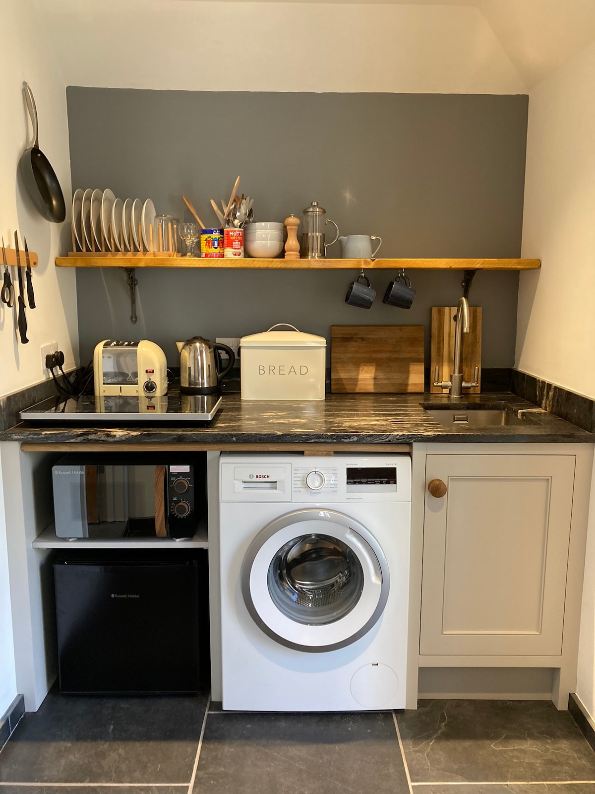 An Gwith is a modern, self-contained & fully equipped 1 bedroom detached studio annexe set in a peaceful semi-rural village with easy access to the city. The downstairs space has open plan living with a kitchen, lounge & dining area; separate toilet & spacious shower room. The spiral staircase leads to a cosy mezzanine level bedroom. There is also a patio & garden area with a private hot tub, perfect for morning coffee & relaxing in the evening. Ideal for couples & business travellers