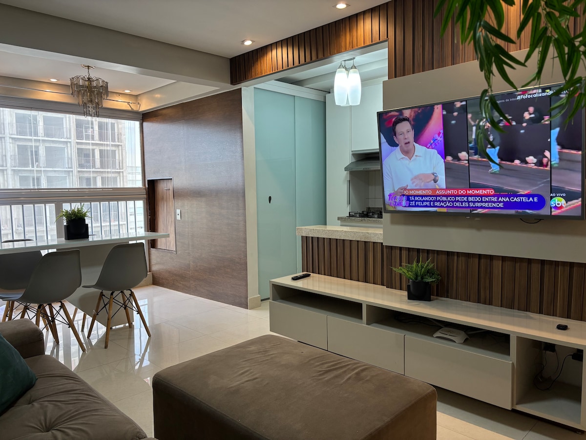 Special place, close to everything. New flat, very well decorated, with TV (Netflix), air-conditioning, queen-size bed, double sofa bed, clean and soft bed and bath linens, washer/dryer, refrigerator, refrigerated water purifier, cooktop, balcony with incredible view, 1 parking space. The building is of a high standard. Infinity edge pool, panoramic and heated view, whirlpools, fitness center and sauna on the roof - 40th floor. Themed spaces, laundry, squash court, garden.