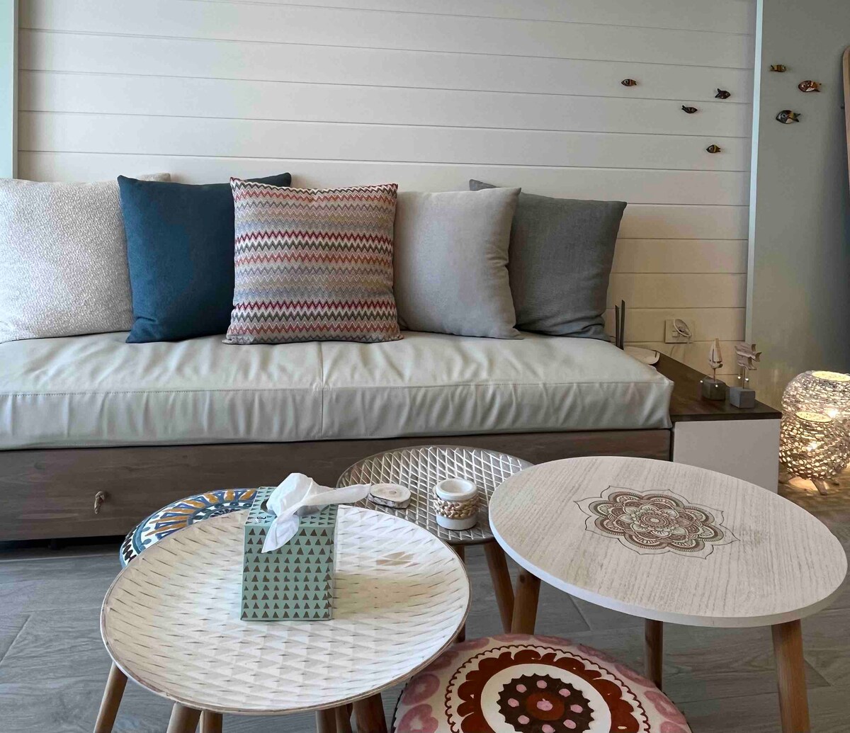 Nested in the heart of Ras Maska, a beautiful and peaceful village 5 minutes from Trípoli. This apartment is in a new modern exclusive villa. It has 24/7 electricity up to 20amp, hot water and WiFi. Ideal for business trips, families, couples and group of friends who want to stay in a relaxing area which at the same time is very close to the city and enjoy the great sea and mountain views.