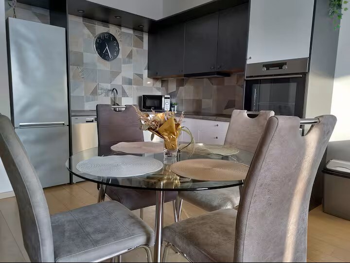 A spacious 3-room (2-bedroom) apartment, ideal for a family or travelers who appreciate being fully equipped, even for a long-term stay. The Bratislava city center can be reached in 15 minutes by tram. Even closer are the surrounding forests, the cycle path connecting Hungary, Slovakia, and Austria (Eurovelo 6), the Petržalka racecourse, and Lake Veľký Draždiak. The apartment includes exercise equipment (wall bars and a pull-up bar) and 2 balconies (facing north and south) with seating areas.