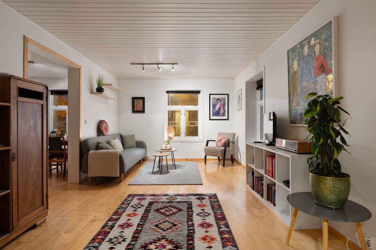 This charming house dates back to 1859 and has undergone a complete renovation in the 90s, with subsequent updates to ensure modern comfort and convenience while preserving its old-world character and historic charm. Located in the heart of the city, the apartment is less than 10 minutes' drive from the airport and within walking distance to Tromsø's best restaurants, cafes, and shops. Additionally, bus connections to all of the city's sights are just a few minutes away from the apartment.