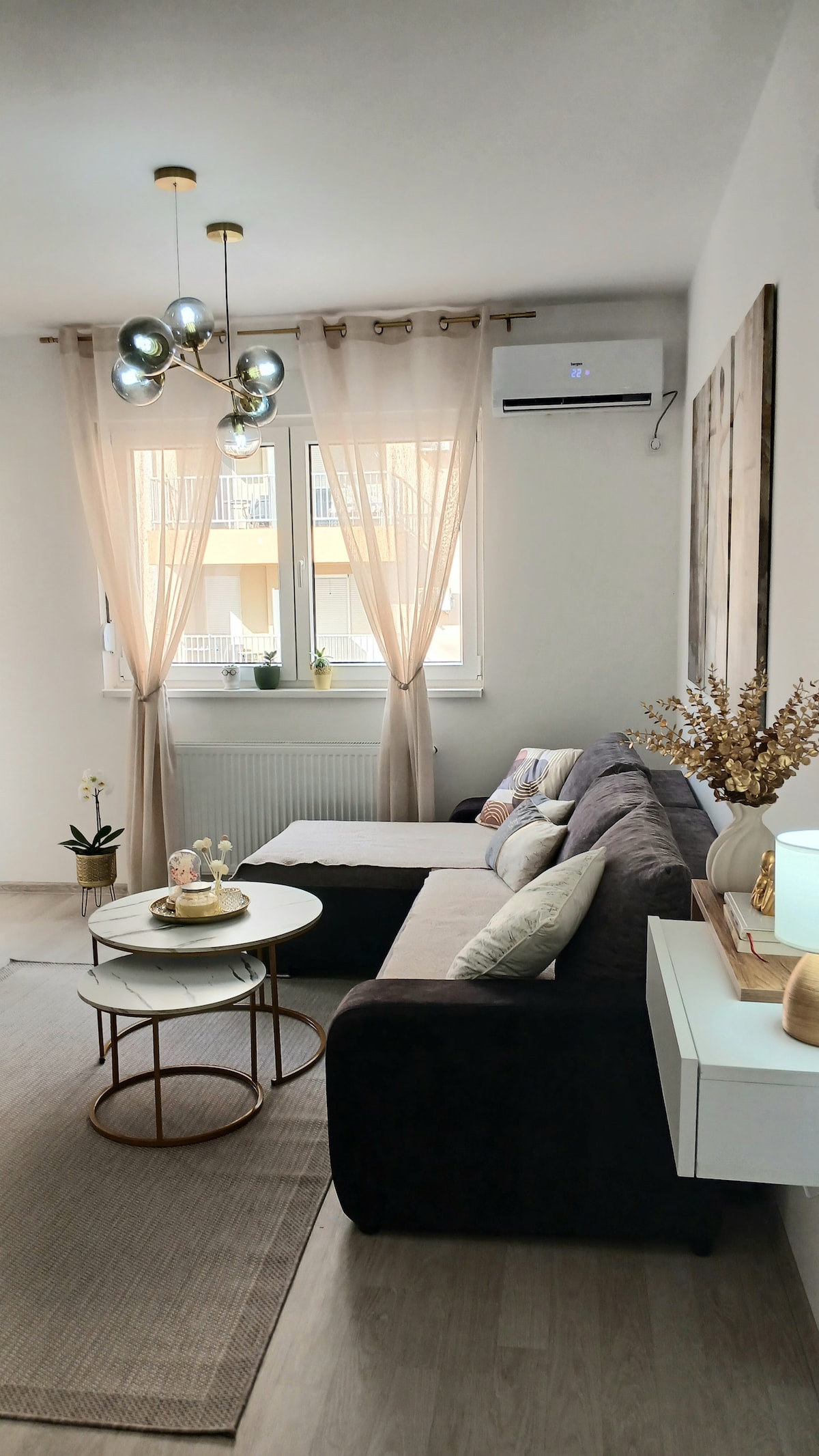 🏡 Topao i moderan stan za ugodan boravak Uživajte u prijatnom i lepo uređenom stanu koji odiše toplinom i komforom. Dnevni boravak sa udobnom ugaonom garniturom i ambijentalnim svetlom idealan je za opuštanje, dok je moderna kuhinja potpuno opremljena za sve vaše potrebe. Dekorativni detalji, biljke i topli tonovi stvaraju prijatnu atmosferu, a klima obezbeđuje komfor tokom cele godine.
