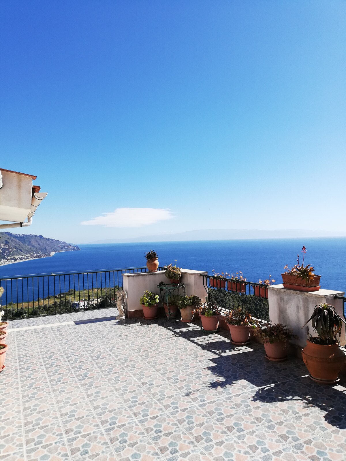 Apartment in the center of Taormina with a large terrace and breathtaking views. A long staircase leads to the apartment The apartment, totally independent, air conditioned and with free Wi-Fi, is located 250mt from Porta Messina, 40mt from the bus terminal, 200mt. from the cable car that leads directly to the sea and a stone's throw from the most important historical works of the city center. The area is well served by everything you need for an excellent stay: minimarket, bars, restaurants...