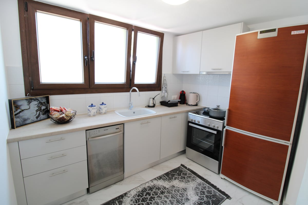 Bright and beautifully designed two-bedroom apartment. Located in a quiet neighborhood less than 70 meters from the sea and within walking distance from the main port of Milos, Adamas. Fully renovated in July 2018 this modern and minimalist apartment offers luxury touches and finishes throughout. Our guests are provided with personal concierge service. The apartment can be serviced upon request.