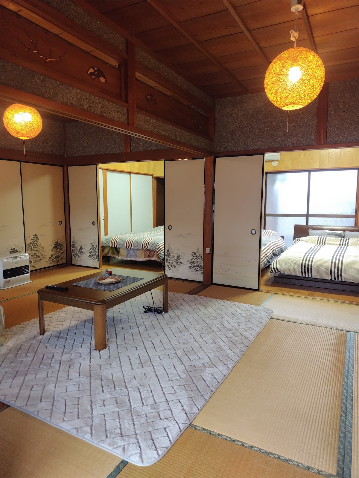 Our house is traditional Japanese style house. 150 years old and in a very quiet location. We are renting house. Not shared with other guests. There are 2 bedrooms(Tatami-room) and 1 living room, gameroom, bathroom, shower toilet, all of the room are only for you. *Children is free of charge if your children don't need a bed and break fast. There are air conditioners in bedroom and livingroom.