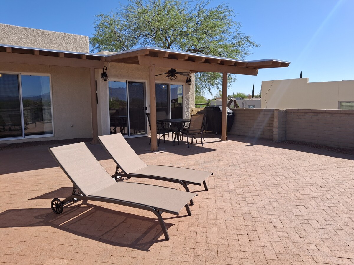 A true Oasis with Private pool, hot spa, grill, outdoor fire pits and indoor wood fireplace. 10 mins drive to shopping center, golf courses, movie theater, restaurants and casino. View of Madera Canyon. 20 mins from airport and Tucson. 30 mins from Tubac. Great for relaxing or entertaining small groups. Perfect for couples, solo adventurers, business travelers and families. Bright and open floor plan with solid brick masonry construction. Walking distance from Anamax Park.