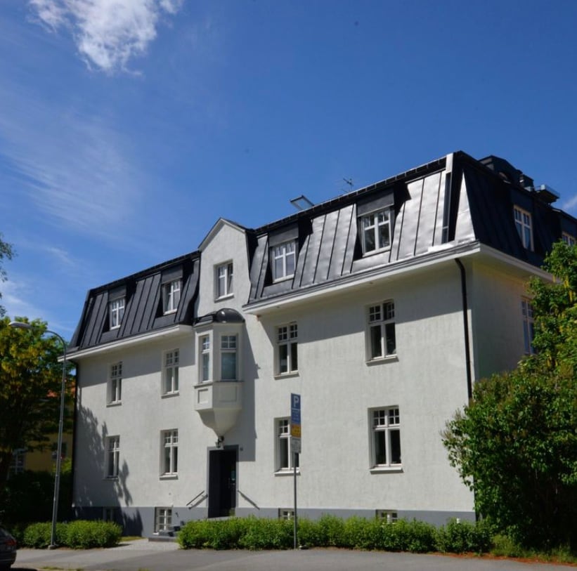 Unique opportunity to live in one of Stockholm's few mansions; Charlottendal from 1779. The apartment is on the upper floor in the main house and is 128 sqm. The apartment has its own entrance. Ceiling height in kitchen, livingroom is astonishing 4 meters. Beautiful garden with three more houses from the 1800- century. The apartment is situated 5 min walk to the subway (Liljeholmen), anda 15 minutes' walk to Södermalm. .