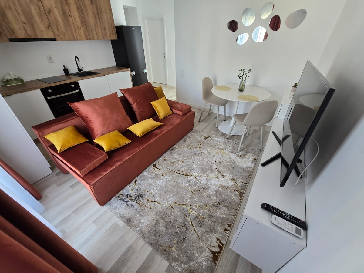 This elegant accommodation is ideal for couples, but also for a smaller group of friends, and guests benefit from a parking space within the complex. Located near OTP Airport, the property offers easy access to public transportation, right from the entrance to the complex. In the area there is a commercial space (which offers cozy bistros, specialty coffee), pharmacy, supermarkets (MEGA Image, LIDL, PENNY), a fuel station.