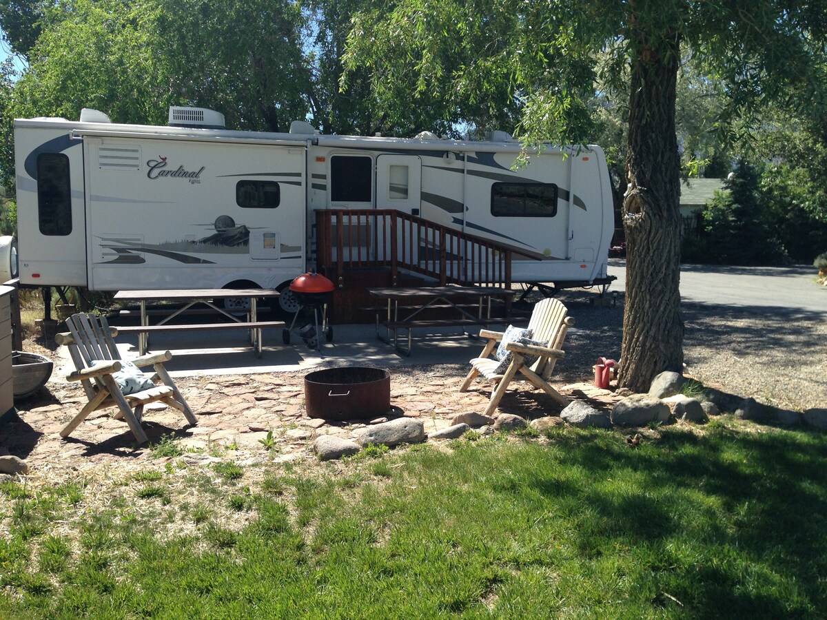 Cozy 22’ RV (a 25 year old Ragen Toy Hauler) on the grounds of Scottie's Workshop, motorcycle shop and campground—-close to lush lawns, fire pit and dining area, camp kitchen with adjacent private shower and toilet rooms. Older RV has Super comfy queen bunk plus two single beds which fold into couches; three burner propane stove and oven; kitchen sink; full size RV style bathroom with sink and shower; air conditioning. Free and easy parking. You can also pitch a tent on the lawn if you wish.