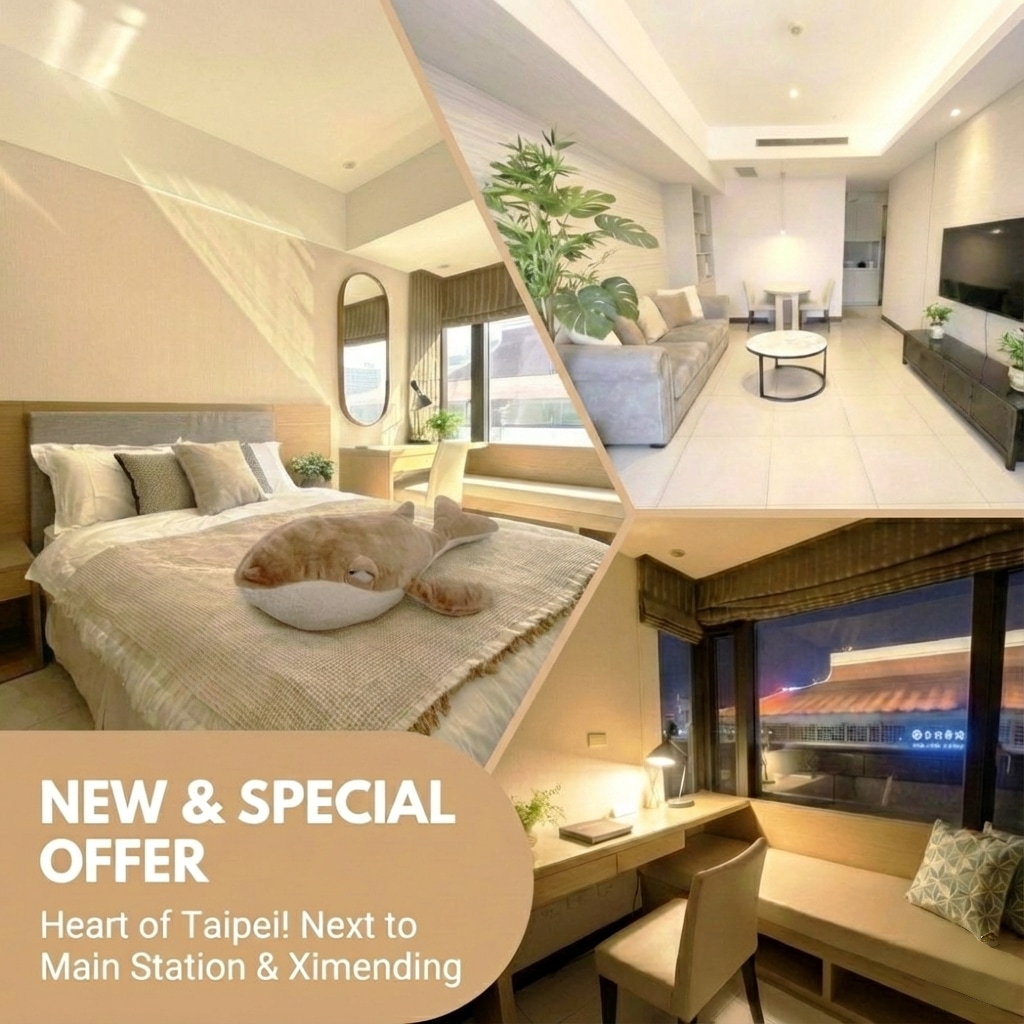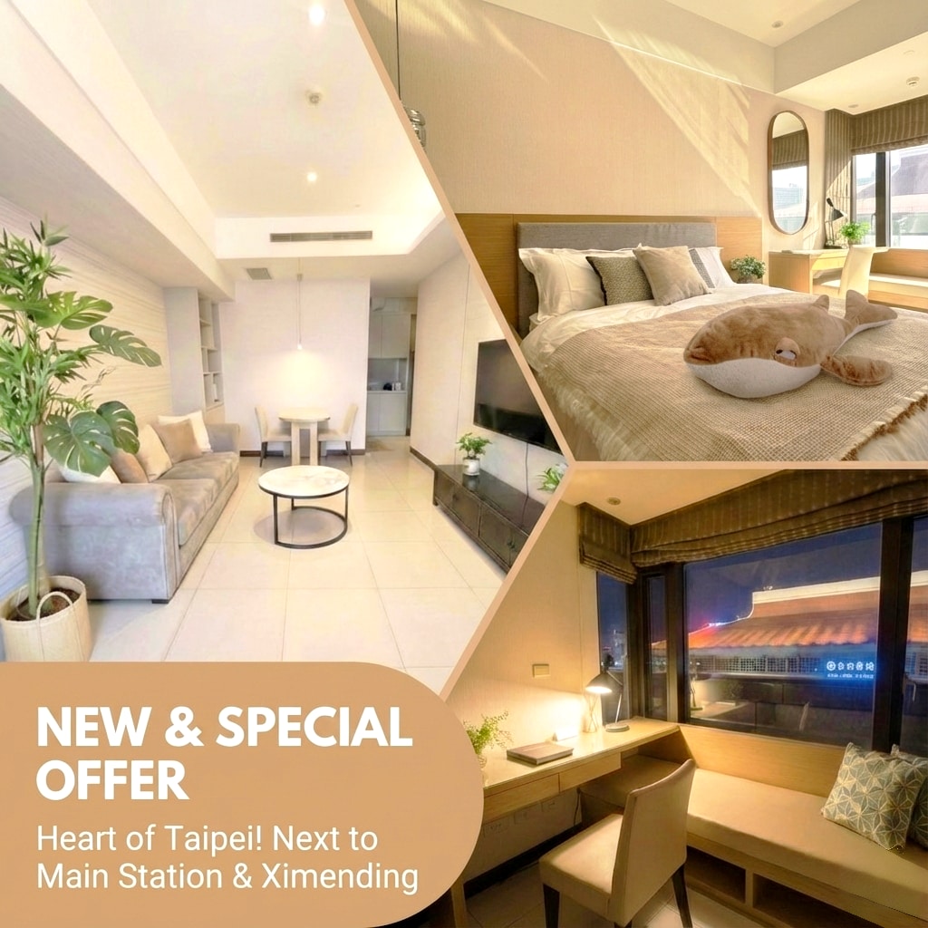 NEW! 2 rooms overlooking Taipei 101 elevator view. Opposite Taipei Station, near Ximending Night Market, Airport MRT Line. Discounts available!
