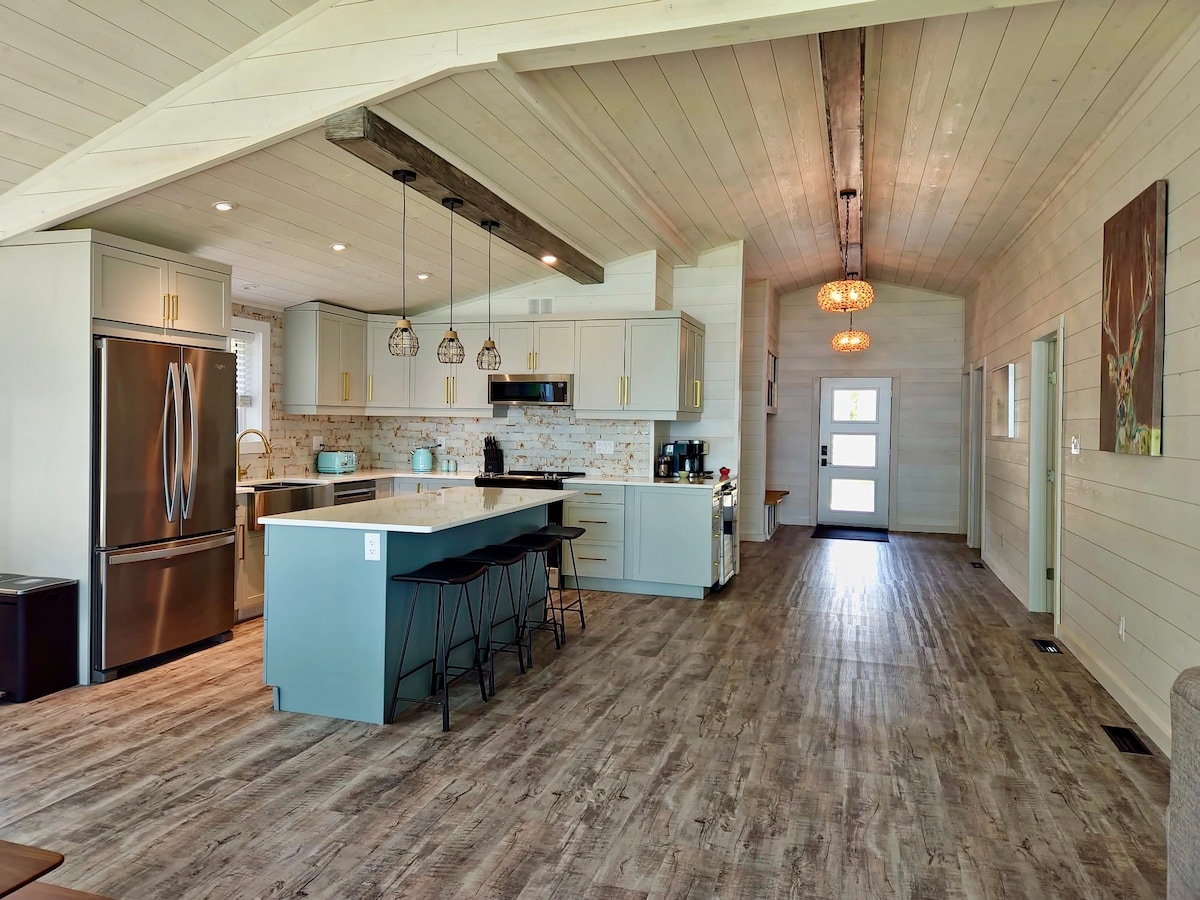 Luxurious Couples Getaway With Outdoor Jacuzzi + Wood-Burning Sauna. Welcome to our modern & cozy custom built tiny hideaway. Deigned for couples seeking relaxation and tranquility. Our single-room home features an open concept kitchen, dining, living room, bedroom space + a beautiful tiled walk in shower. You won’t forget your time in this romantic, memorable place.