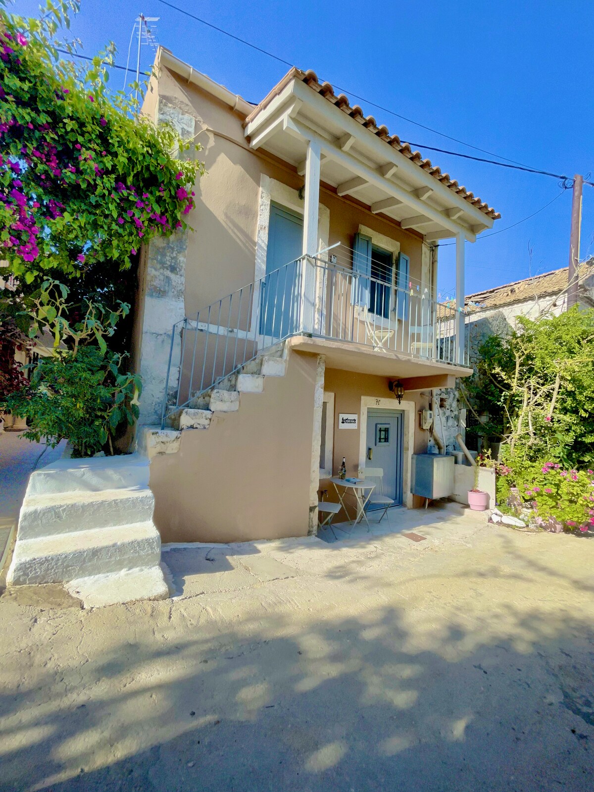 Chic, cozy, stylish and freshly renovated apartment studio in the heart of Fiskardo, just 100 meters from the harbor, beaches, and shops. Features a queen bed, sofa bed, elegant en-suite bathroom, air conditioning, open closet, balcony, Nespresso machine, kettle, hair dryer, Starlink WiFi, and Android Smart TV. Ideal for couples or small families seeking comfort and walkable access to everything. Enjoy the spacious stone courtyard at the back, perfect for relaxing afternoons or evenings.
