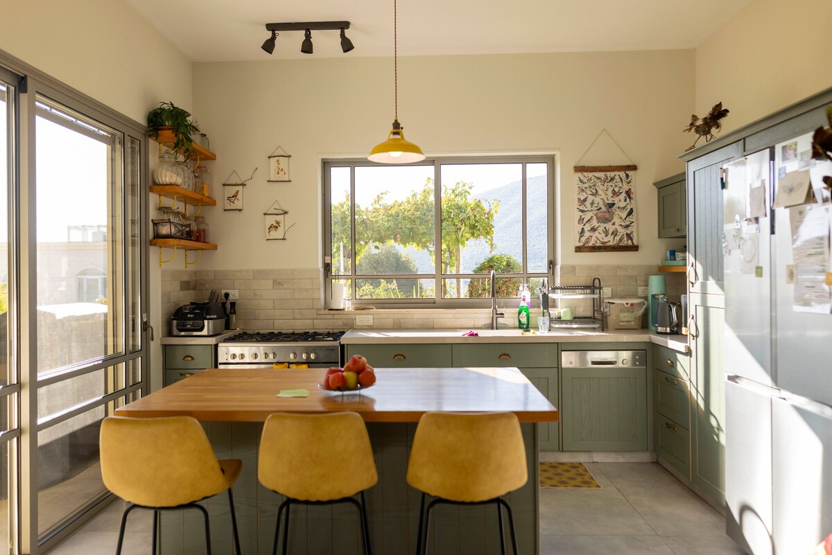 Welcome to our beautiful, newly built and carefully decorated home, surrounded by the serene nature of Mount Meron and its lush, evergreen forests. The house is spotlessly clean, spacious, and fully equipped to make your stay comfortable and relaxing. Step outside into a vibrant garden offering seasonal organic fruits and vegetables, and collect fresh eggs each morning from our friendly backyard chickens. Perfect for families, couples, and all nature lovers seeking a peaceful retreat.