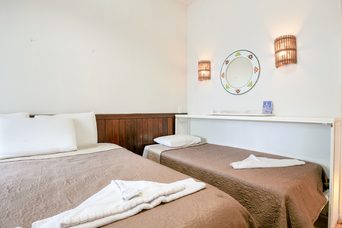 Cozy, Practical and with Breakfast Included in All Rates! The Standard Room is ideal for small families or groups of friends. Located on the ground floor, this accommodation offers a queen size bed and two single beds, split air conditioning, ceiling fan, LED TV, Wi-Fi, minibar, wardrobe or closet, standard pillow, bed linen, towels and a full private bathroom. Accommodates up to 4 people.