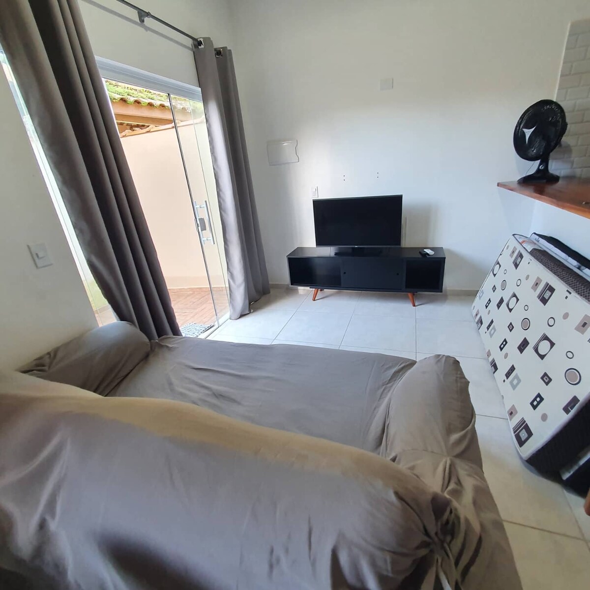 Ground floor flat with 1 bedroom, 1 bathroom and kitchen equipped with basic utensils. (no sandwich maker) Smart TV, Internet, queen bed and air-conditioning. WE DO NOT PROVIDE BEDDING, TOWELS, PERSONAL HYGIENE MATERIALS OR CLEANING PRODUCTS *WE DO NOT HAVE CLOSED PARKING, THERE ARE 3 ROTATING SPACES IN FRONT OF THE BUILDING, WITHOUT A GATE AND WITHOUT A COVER. OTHER PARKING SPACES ARE ON THE STREET. *WE ONLY HOST DOGS: as long as specified in the pets field.
