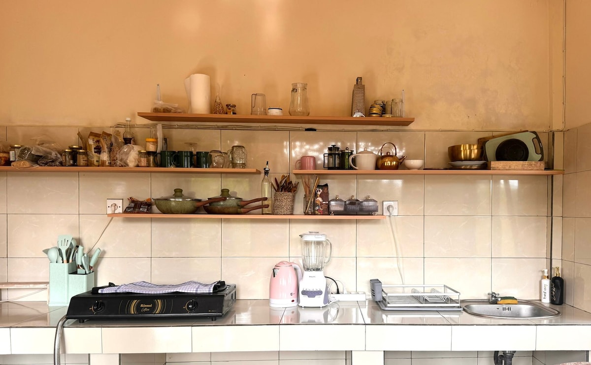 Private Art Jungle Apartment | Kitchen + Workspace