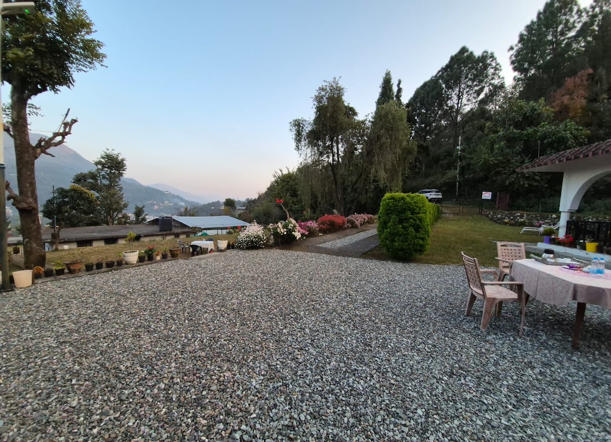 Near Nainital, a 2 room suite in a heritage British bungalow that has been tastefully converted into a home stay. Set up in a very peaceful location away from the crowds. If you are in the mood for a relaxed holiday in a private gated bungalow with large open gardens, this is an ideal location. Pet-friendly. We have a cook/ caretaker team to ensure that your stay is comfortable. Strong WiFI in place. Food is at cost. There is a nominal charge for staff services that you can check with us.