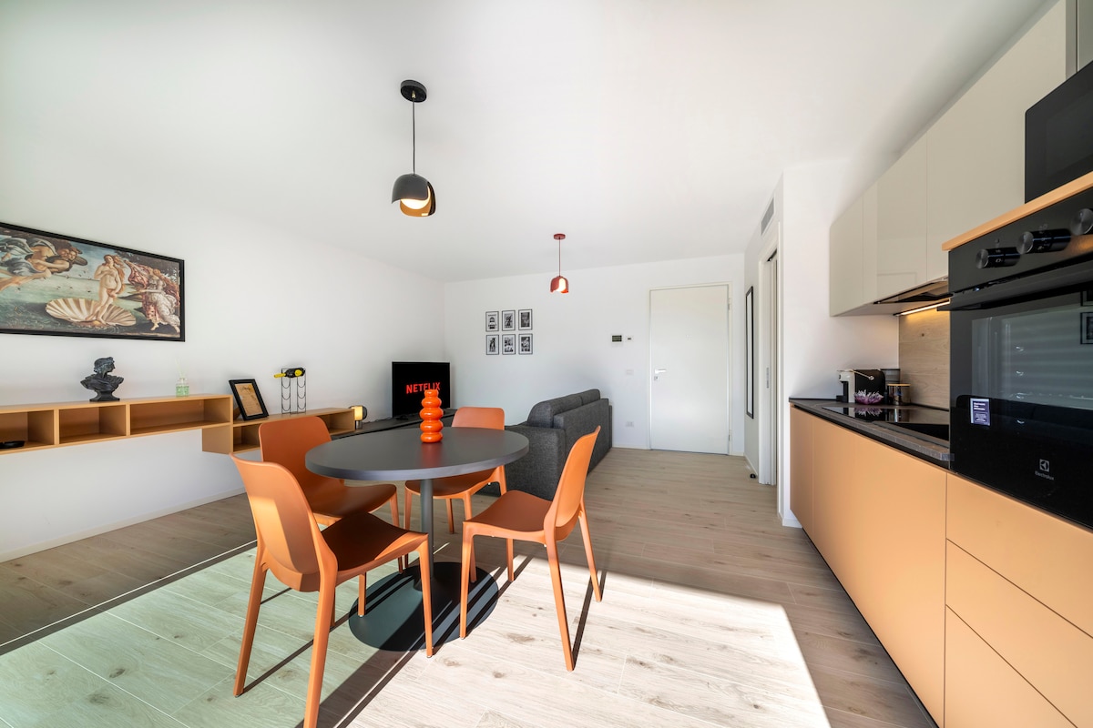Cozy 1bed/1bath of about 40sqm (430 sf) located in a quiet neighborhood, about 4min. car distance from the city center (15min by feet). The apartment is located on the 1st floor (walk up) and overlooks the quiet Via Michelini. The unit has been recently fully refurbished (2023) and is equipped with A/C, Smart TV and Wi-fi. It comprises a bedroom with a full double size bed, a living room with a kitchen, a terrace (covered) and a fancy bathroom with shower. Free park. Washing machine and dryer