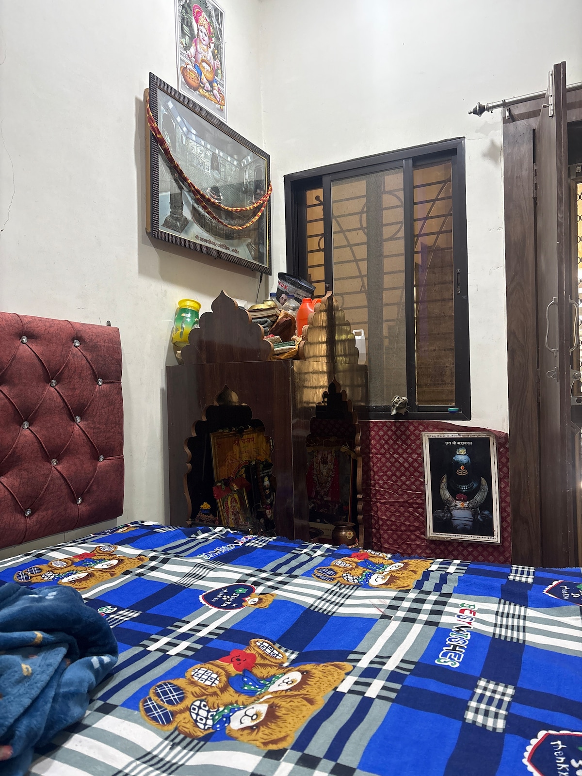 Aarambh by Navkar Homes ✨ Experience the spiritual aura of Ujjain with the comfort & warmth of a true Indian home 🌼 📍 Just 10 min from Mahakaleshwar Temple. Book the whole property for your group & enjoy complete access — 2 bedrooms, 2 extra double beds in living/utility areas, 2 bathrooms, balcony, kitchen & a large lounge with games. Perfect for celebrations, reunions & long stays. Stay in a cozy 2BHK on the ground floor, while we live upstairs — always available if you need anything!