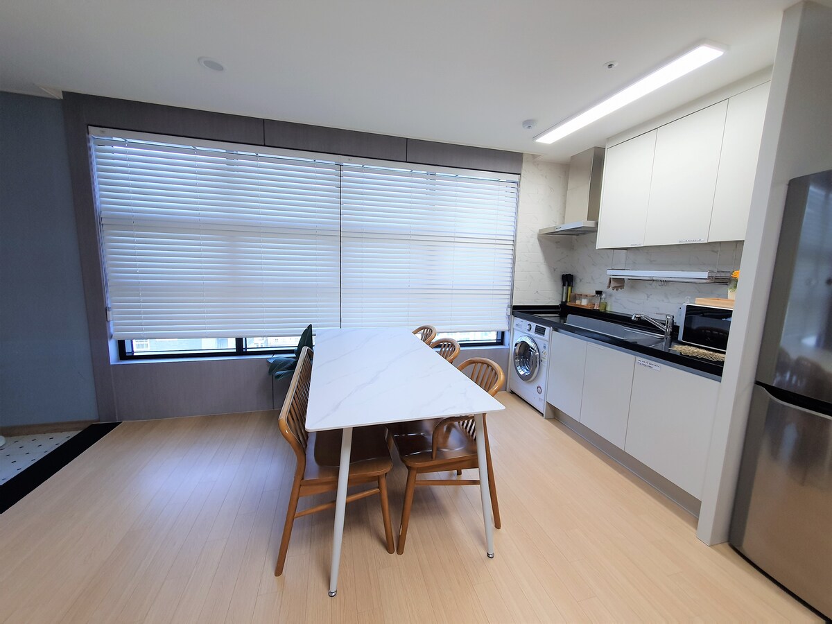 🏠 Eun Stay 🎁Benefits for guests booking 5 nights or more for foreigners🎁 💥Choose one free service💥 ✈️1. Gimhae Airport or Busan Station pick up 🚍2. Gimhae Airport or Busan Station drop off 🥗3. Korean food breakfast or one dinner You can only choose one💥 free service and contact us up to 15 days before check-in. ~ ^ ^ 🧳Luggage can be left (free service) -Luggage storage available early in the morning before check-in -Luggage drop-off available until late in the afternoon after check-out When 🚌booking a place to stay - Busan `Gyeongju day tour, night tour, etc. Please contact us and we will guide you. (Please take note of the photo for the tour price.) ❤️Extra linen for free 🧊a cold and hot water purifier Use of 🍷private terrace One 🚘free parking support (Be sure to tell us in advance before entering the room.)