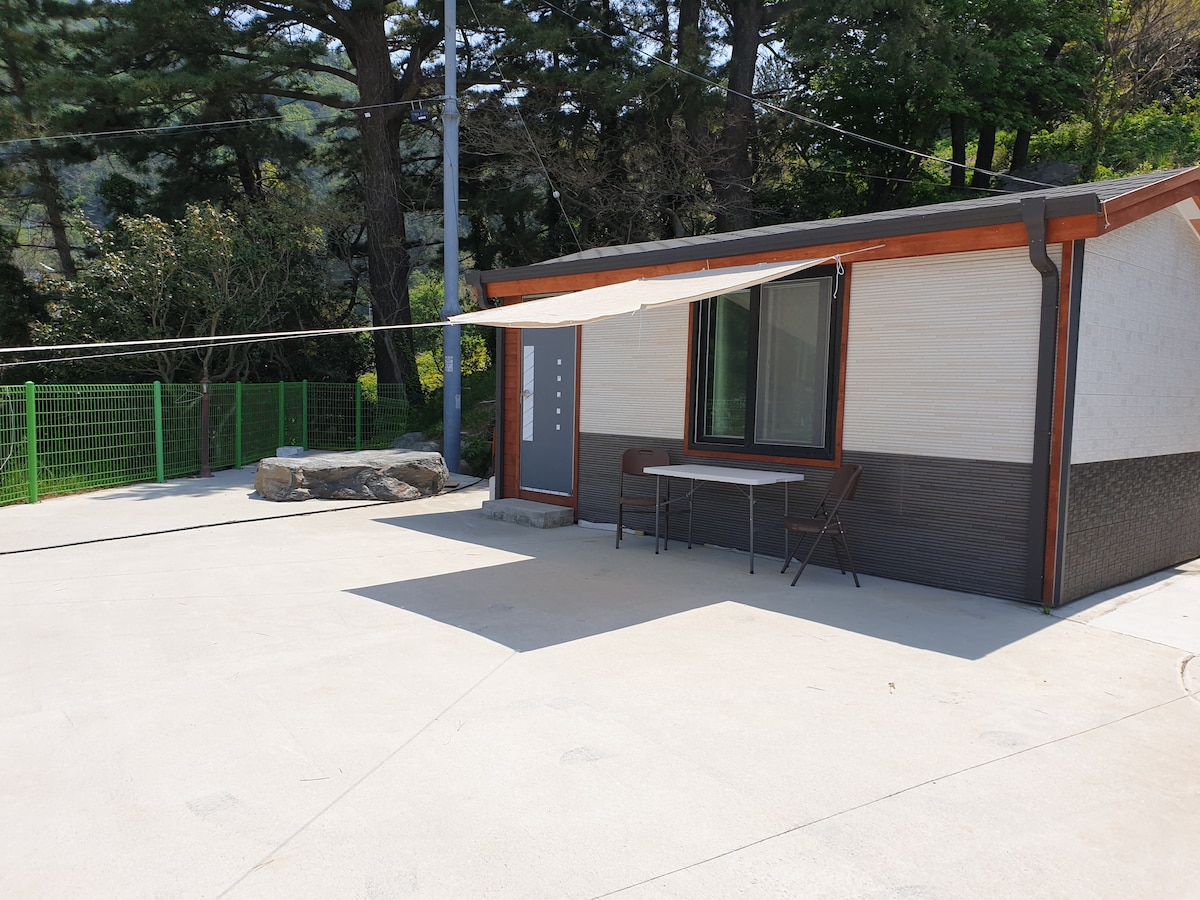 🏠It is a 6-square-meter separate building with a one-room structure. It's a perfect place for 2 adults or for a child and a mom and dad. The front space is spacious, making it easy to park several cars, and it is a perfect place to stay for a barbecue or party. Charcoal and barbecue grill rental is also available (30,000 KRW for 2-4 people), Unlimited 5-layered pork belly meals are also available (please make a reservation in advance♡). Other cooking utensils (burner, rice cooker, pot, frying pan, spoon, cup, etc.), dryer, towel, shampoo, conditioner, disposable toothbrush, toothpaste, 2L bottle of water, etc. are provided. If you request towels, we'll provide you with more every day.🙇🏻♀️ If you need it, we can also provide emergency medicine! You can enjoy the evening sunset sea while eating or barbecuing in the yard in front of the accommodation. You can see the stars well at night⭐ ️ This is a place where you can come and stay comfortably with your loved ones. (※ There are no beds, but bedding and floor mattresses are provided)